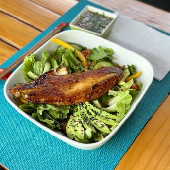 Bolitas de ajonjolí, rellenas de azuki, sobre una cama de helado